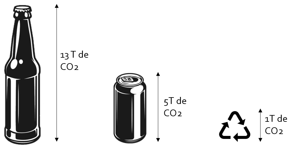 Par exemple pour une microbrasserie, avec une production 120 hL de bière sur une année, la consigne permet une économie de 12T de CO2. Cela représente en équivalent CO2 environ 60 000 km en voiture !